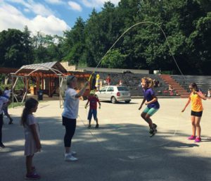 Na Železnej studničke sa amfiteáter na jeden celý deň premenil na centrum švihadiel a veselých detí skákajúcich cez švihadlo. Učili sme deti správnu techniku skákania cez švihadlo, rôzne hry so švihadlom, skákanie vo dvojiciach a vyskúšali si všetky štýly rope skippingu a nemohli sme vynechať aj double dutch, čo je skákanie cez švihadlo cez dve dlhé švihadlá.