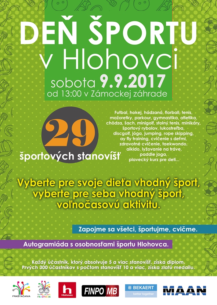 Dňa 9. septembra 2017 sa konal Deň športu v Zámockej Záhrade v Hlohovci. Celkom 32 športových stanovíšť si mohli pozrieť záujemcovia, ktorí hľadali pre seba a svoje deti vhodný šport, či voľnočasovú aktivitu. Rope skipping samozrejme nemohol chýbať! Skákanie cez švihadlo si vyskúšali nielen deti, ale aj dospelí.